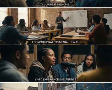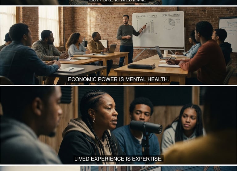 Hip-Hop Healing Institute (HHHI) provides culturally grounded, trauma-informed group programming that supports engagement, stabilization, and skill-building. Our approach combines evidence-aligned practices with creative tools such as lyric writing, reflection prompts, guided expression, and structured group routines—designed to strengthen emotional regulation, pro-social connection, and functional participation.
