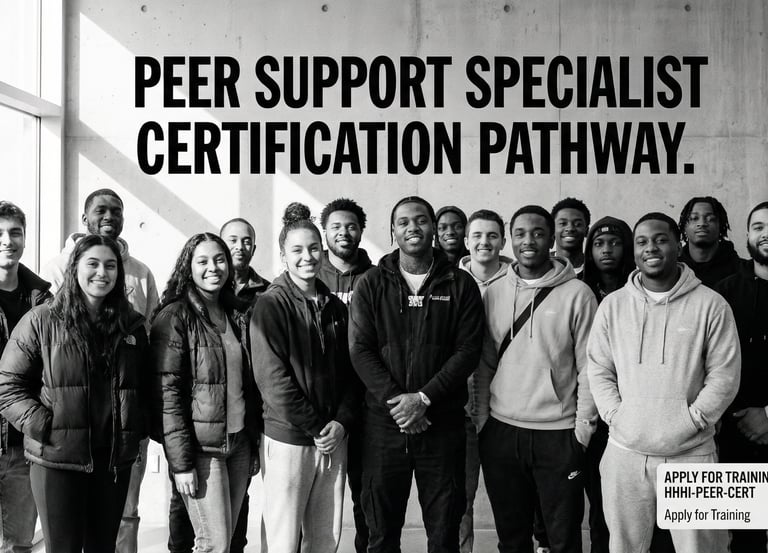 HHHI delivers non-clinical peer support, workforce training, and community-based programming. Clinical services are provided through licensed healthcare partners using compliant documentation, consent, and supervision protocols.